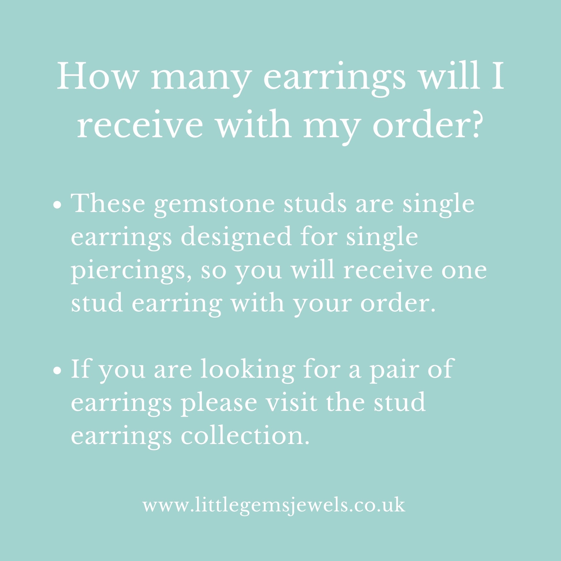 You can now choose your own single stud earring from the 4mm gemstone ball stud collection, so that you can mix and match your favourite colours or adorn your single lobe piercing.