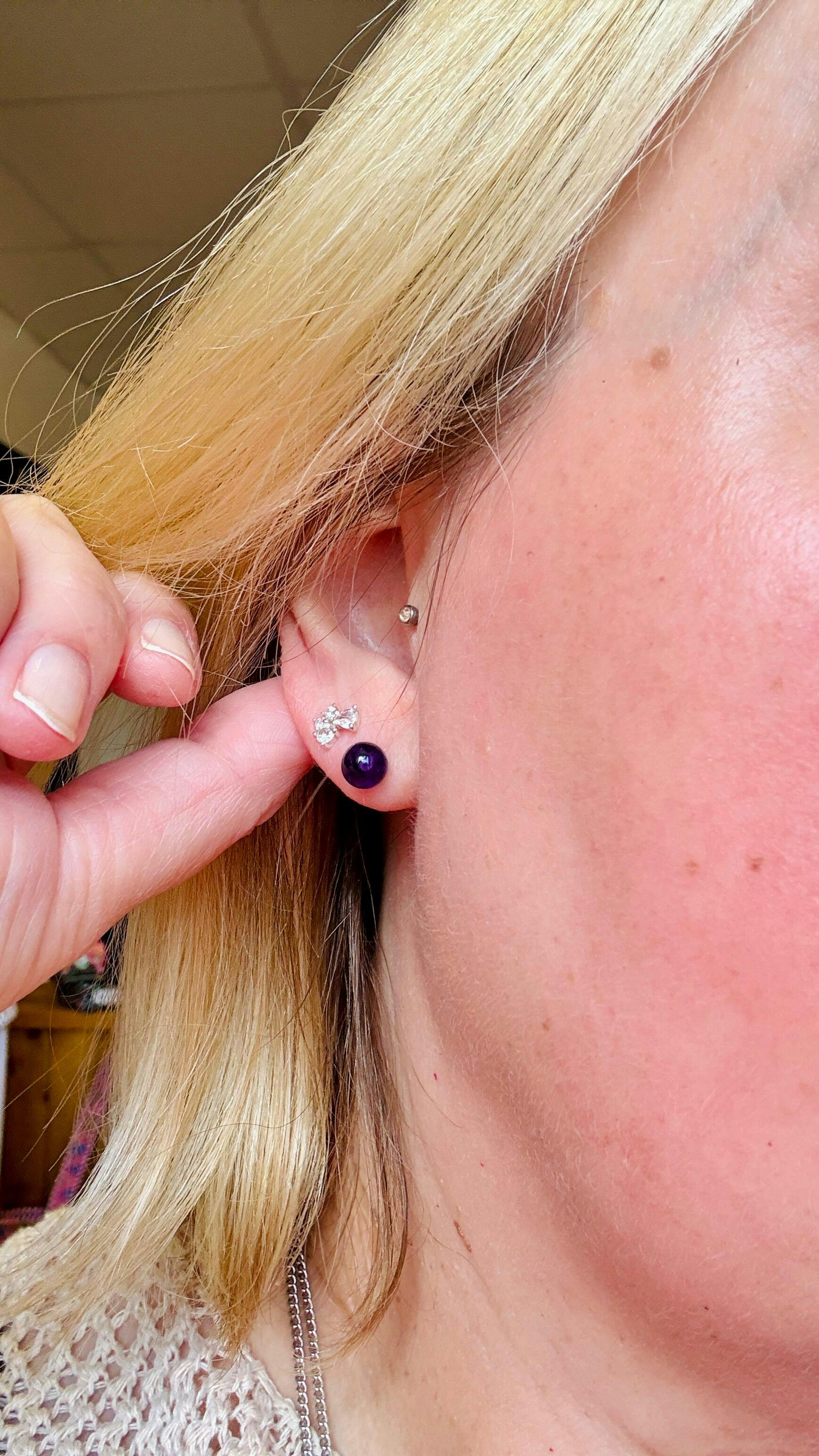 Whether you're looking for February birthstone earrings, minimalist gemstone studs, or simply a stylish pair of purple hypoallergenic earrings, these Amethyst ball studs are a beautiful choice.