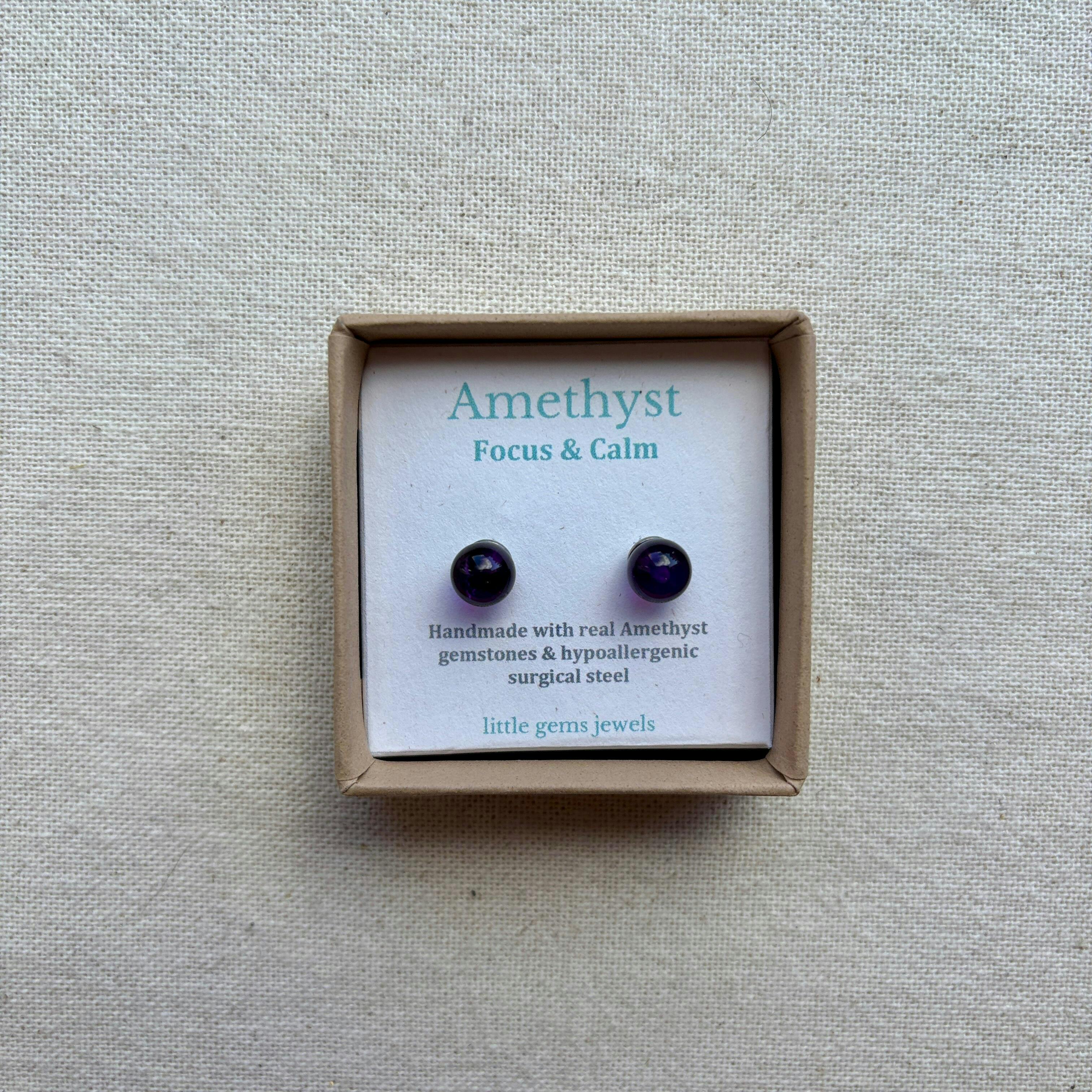These beautiful 6mm Amethyst stud earrings are a timeless addition to any jewellery collection. Featuring genuine purple Amethyst gemstones, their calming colour and elegant simplicity make them perfect for everyday wear.