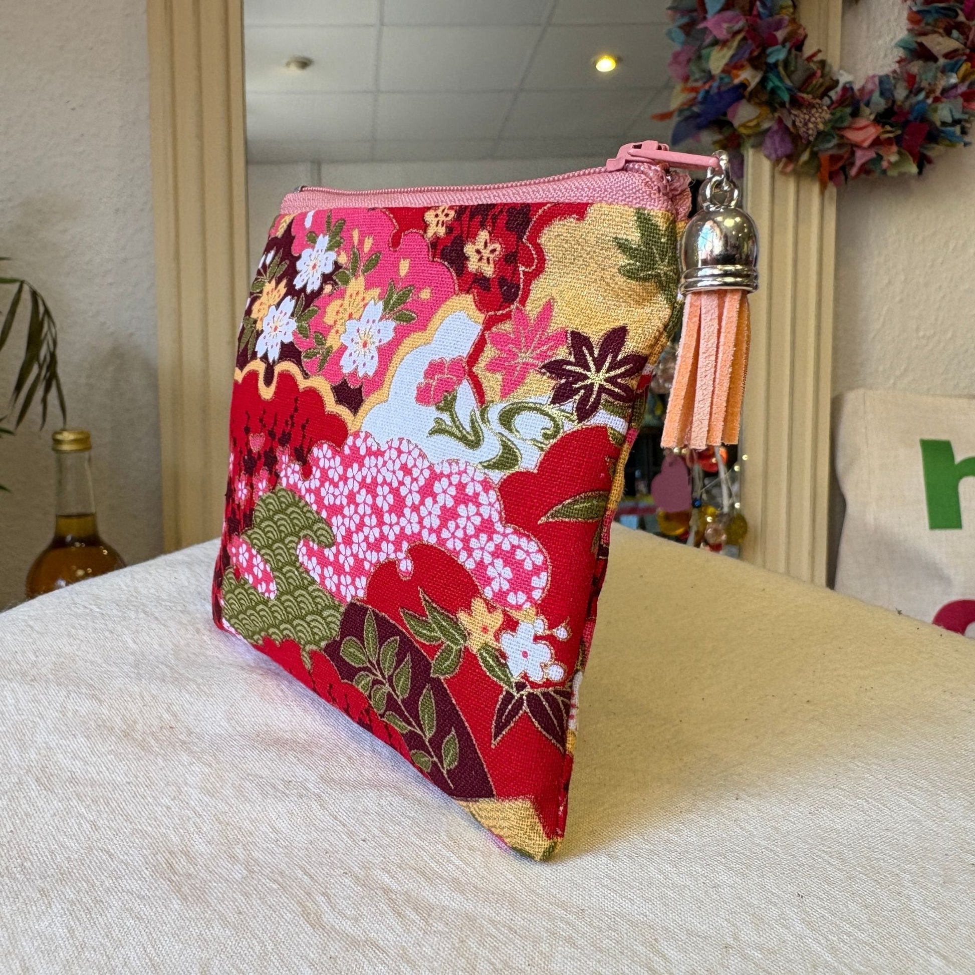 Its striking pattern of flowing red Japanese hills, finished with subtle gold details, makes it both practical and eye-catching.